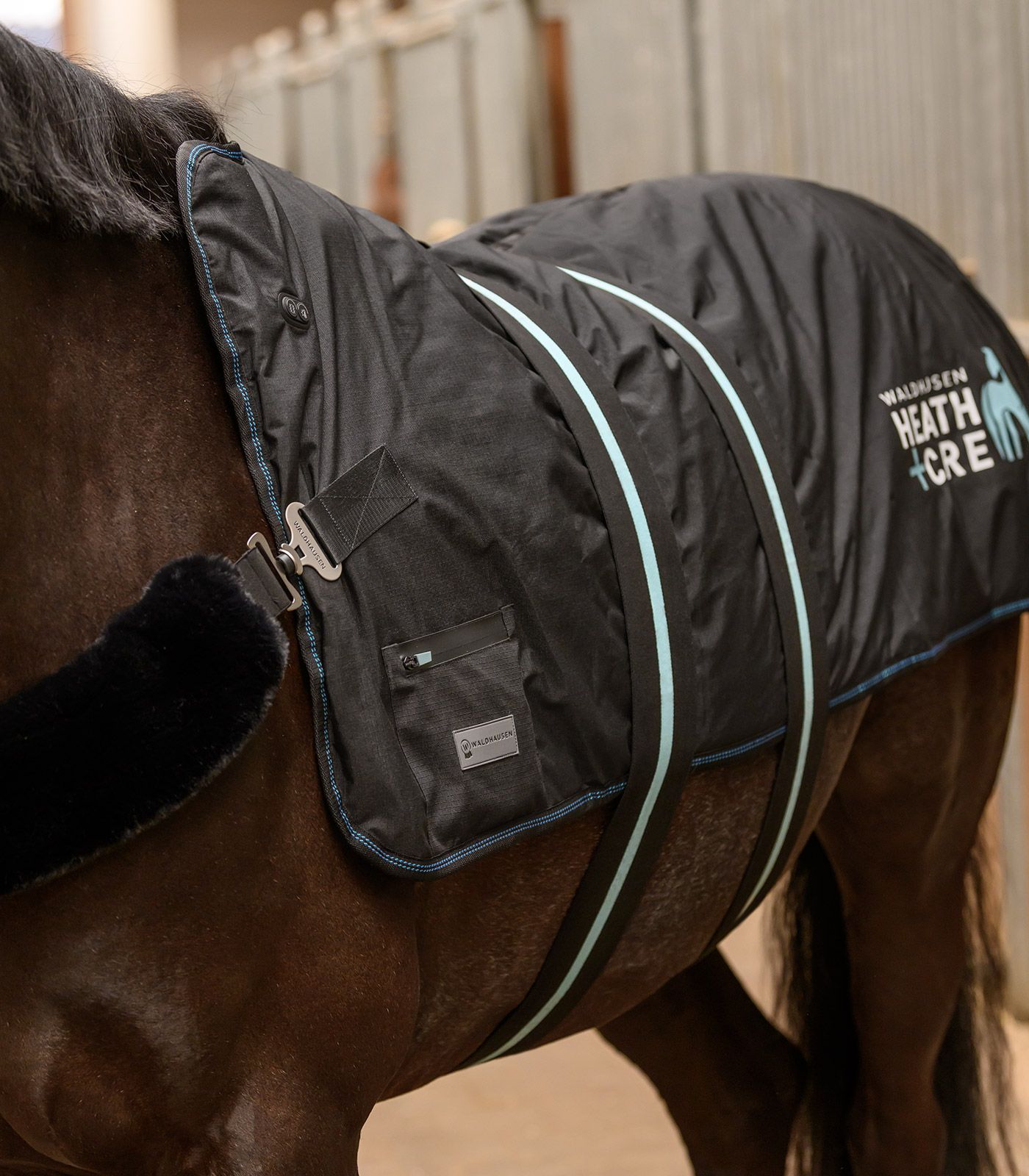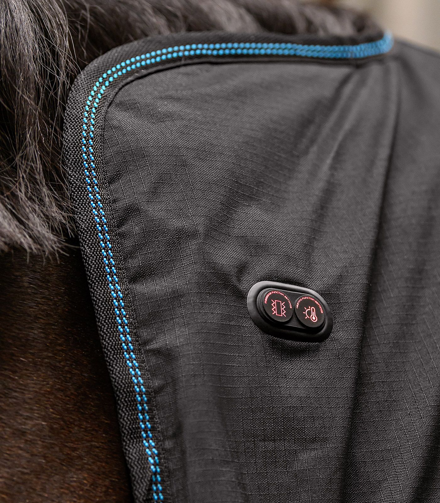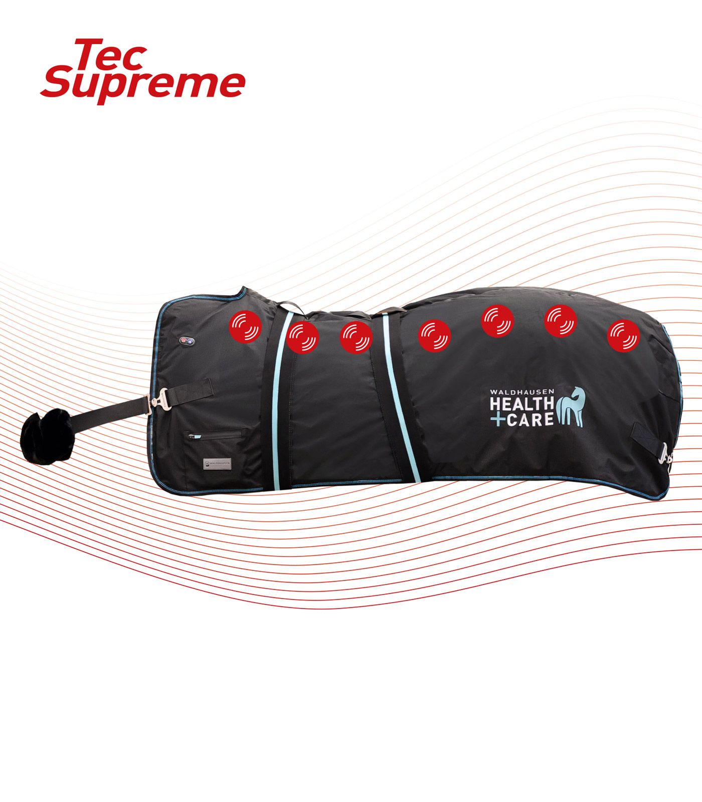 Welzijn met één druk op de knop. De Waldhausen Health + Care TecSupreme verwarmings- en massagedeken ontspant specifiek gespannen spieren, bevordert de bloedsomloop en ondersteunt de regeneratie. Elke zijde van de deken heeft een eigen verwarmingssysteem en zeven geïntegreerde massagekoppen. Beide zijden kunnen afzonderlijk en onafhankelijk van elkaar worden bediend. Snel, effectief en ongelooflijk eenvoudig in gebruik. Of het nu voor de training, na het werk of gewoon om uw paard te verwennen is: uw paard ervaart warmte en massage alsof hij zich in zijn eigen wellness-spa bevindt.